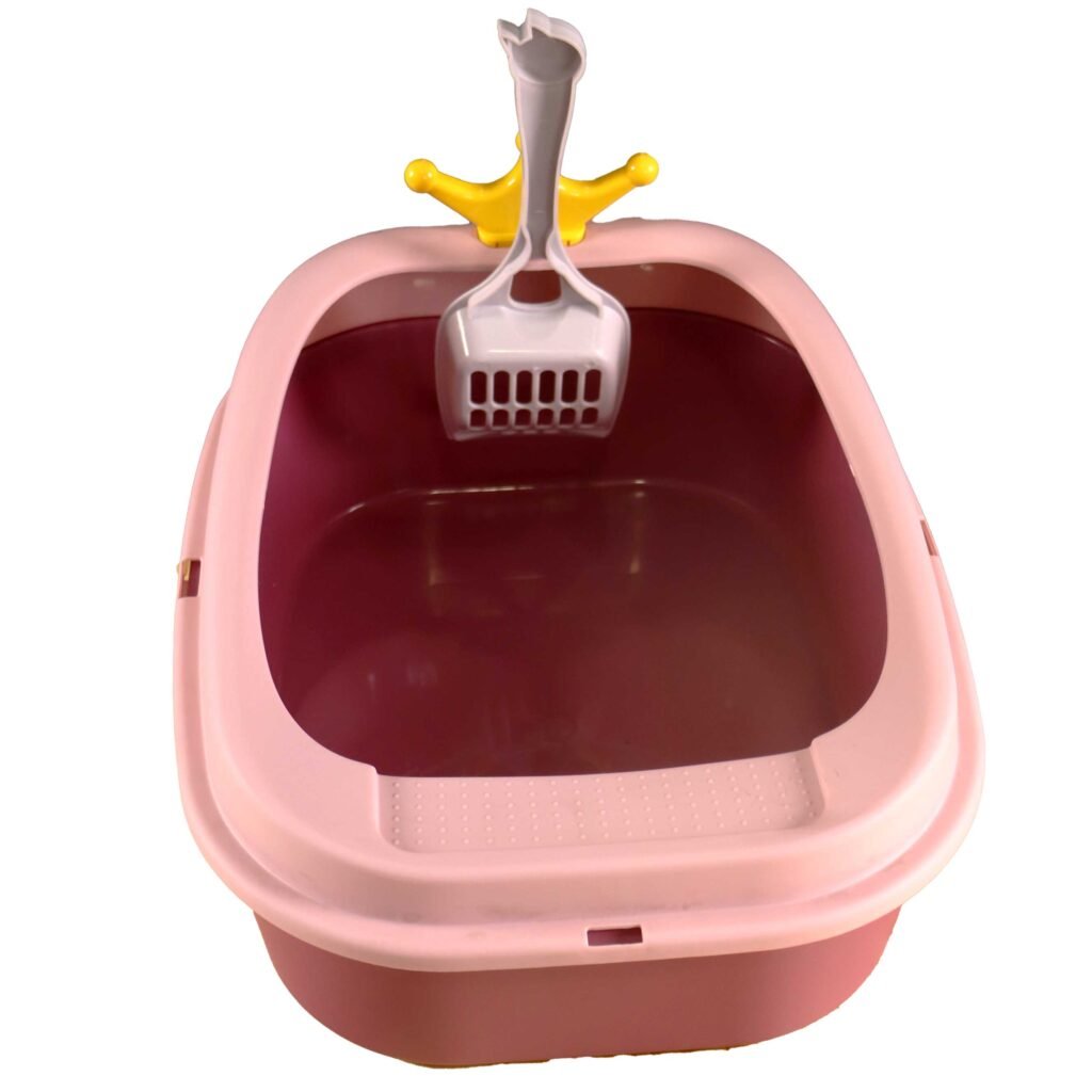 - Pala Higiénica Integrada: Incluye una pala con soporte temático de «corona» (amarilla), que no solo es un detalle visual, sino que garantiza que la herramienta de limpieza esté siempre a mano y que no toque otras superficies de la casa.